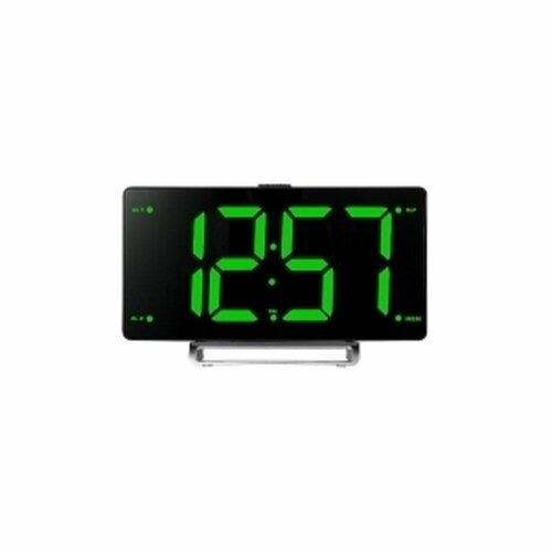Светодиодный дисплей с высотой символов 3" (7.62 см) Плавная регулировка яркости дисплея Кварцевый стабилизатор Два будильника Два режима работы будильника (сигнал/радио) Отложенный сигнал будильника Отключение радио по таймеру Формат времени 12/24 часа FM-тюнер (87.5 – 108 МГц) Встроенный динамик Два USB-порта для зарядки мобильных устройств (5 В 1 А) Питание от адаптера (в комплекте) Индикация: зеленая/белая Цвет: чёрный Размер 205 х 120 х 45 мм Вес 0,36 кг