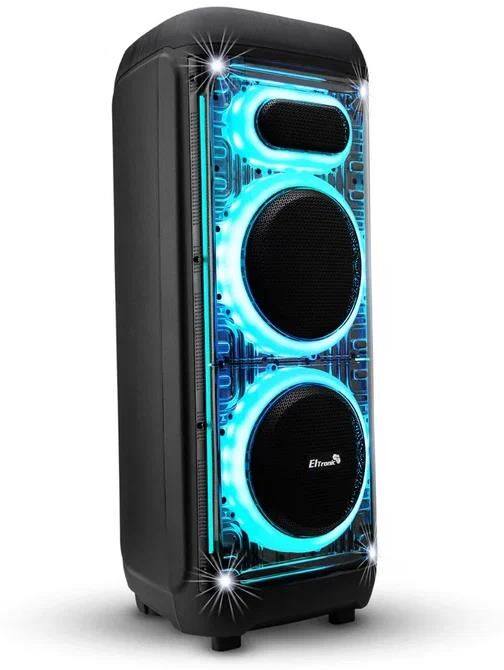 ElTRONIC 20-23 SKILLETS BOX 1500 акустическая колонка 2*10"" динамикков Режимы воспроизведения: - Bluetooth - Внешний накопитель - Aux - FM Мощность: - 1500 Ватт PMPO - 150 Ватт RMS Питание: - Сеть 220V - Встроенный аккумулятор 12В/7А Разъемы: - USB - MicroSD - SD - Jack 6.3 мм (микрофон, гитара) 3 шт. Звук: - Частотный диапазон: 50HZ-20KHZ - Сигнал/Шум: 70dB - Разделение: 70dB Комплектация: - Беспроводной микрофон - 2 шт - Пульт - Кабель AUX - Инструкция - Сетевой кабель Размер упаковки брутто: Ширина - 40 см Высота -92,5 см Глубина - 39 см Вес - 20,5 кг Размер нетто: Ширина - 35 см Высота -89 см Глубина - 32 см Вес-18,5 кг Дополнительно: TWS функция соединения двух колонок в акустическую систему через Bluetooth Дисплей Регулировка звучания микрофонов LED подсветка динамика (активная) Шести полосный эквалайзер Возможность записи звука Управление диапазонами частот звучания Колесики для удобства транспортировки"