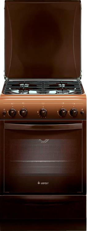 Габаритные размеры: 50х58.5х85 см. Полезный объем духовки: 52 л. Тип очистки Гидролизная/ 4 газ. конфорки. Цвет модели Коричневый. Материал варочной поверхности Эмаль. Материал решеток варочной поверхности Чугун. Крышка плиты Металлическая. Газ-контроль духового шкафа. Электророзжиг горелок стола Кнопка розжига на панели. Тип направляющих духового шкафа Штампованные. Внутреннее покрытие духового шкафа Эмаль легкой очистки SMART CERAMIC. Количество стекол в дверце духового шкафа 2. Ящик для посуды и принадлежностей Откидная крышка. Аксессуары: Жаровня 1, Регулировочные ножки, Комплект сменных сопел, Противень 1, Решетка варочной поверхности 2, Решетка духового шкафа 1.