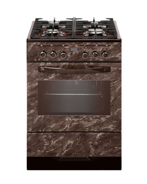 Газоэлектрическая плита. Цвет: коричневый с рисунком "мрамор". Варочная поверхность: стеклянная. Габаритные размеры ШхГхВ: 60х60х85 см. Объём дух...