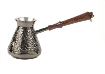 "Ромашка" 0,6л. Медная турка классической конусообразной формы с утолщённым дном предназначена для приготовления ароматного натурального кофе. Внутренняя поверхность покрыта пищевым оловом. Наружная сторона украшена оригинальным орнаментом. Деревянная ручка является надёжным теплоизолирующим материалом. Подходит для всех типов плит, кроме индукционных. Проста в эксплуатации. Объём: 600 мл.
