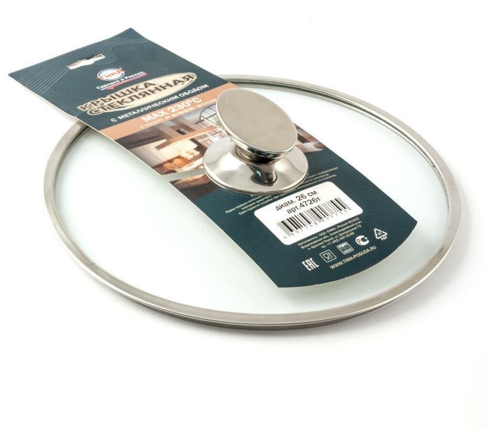 Крышка стекл. с метал/обод + овальная ручка НЖС низкая TIMA НЖС 20 см низ. 5520