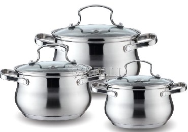 Набор из 6 предметов; Кастрюля с жаропрочной стеклянной крышкой, 2.1л; Кастрюля с жаропрочной стеклянной крышкой, 3л; Кастрюля с жаропрочной стеклянной крышкой, 4л; Высококачественная нержавеющая сталь 18/10; 5-ти слойное капсульное дно; Подходит для всех видов плит, включая индукционную; Можно мыть в посудомоечной машине.