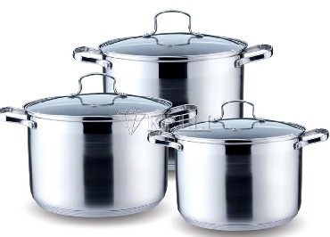 Набор из 6 предметов; Кастрюля с жаропрочной стеклянной крышкой 5л; Кастрюля с жаропрочной стеклянной крышкой 6,6л; Кастрюля с жаропрочной стеклянной крышкой 8л; Диаметр изделий составляет: 22 см, 24 см, 26 см; Высококачественная нержавеющая сталь 18/10; 5-ти слойное капсульное дно; Мерная шкала внутри; Подходит для всех видов плит, включая индукционные; Можно мыть в посудомоечной машине.