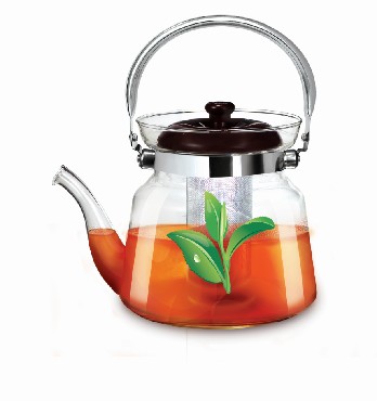 LR06-13 Заварочный чайник LARA 1400мл, БОРОСИЛИКАТНОЕ СТЕКЛО, стальной фильтр, складная ручка