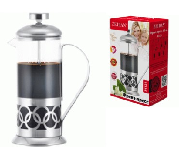 Тип френч-пресс. Объем 0,35 л. Материал колбы стекло. Материал корпуса нержавеющая сталь. Материал ручки нержавеющая сталь. Цвет серебристый. Фильтр. Крышка.
