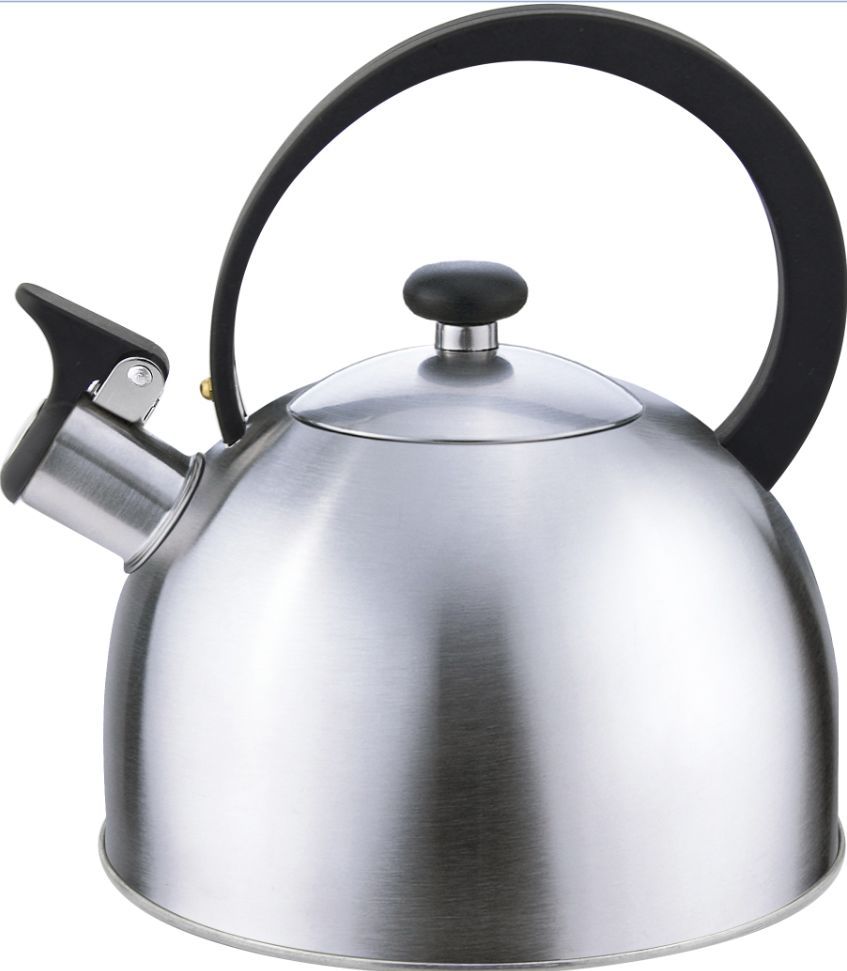 Чайник из нержавеющей стали № 201 со свистком с крышкой, с ручкой из нейлона, матовый внутри/матовый - снаружи, дно - одинарное, подходит для всех типов пл...