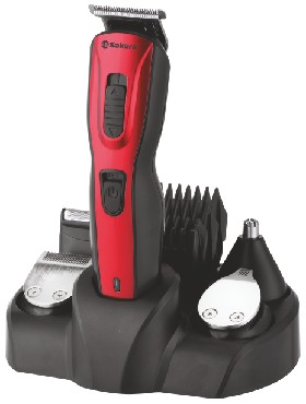 Триммер универсальный для бороды, усов, бровей, ушей, носа, висков и т.д., 10 насадок в комплект (5 гребней 3-12 мм, круглая насадка-триммер, 3 плоские насадки, насадка-бритва). 3-ступенчатая регулировка лезвий, автономная работа от аккумулятора до 50 ми