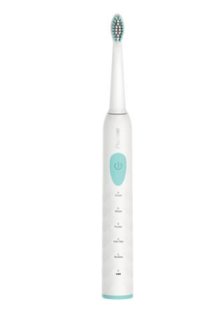 PIONEER TB-5020 Число колебаний в минуту: 25 000 Водонепроницаемый корпус: есть, IPX7 Время непрерывной работы, мин.: 2 Время зарядки, ч.: 5 Напоминание о смене положения щетки: каждые 30 секунд Уровень шума, дБ. : ?65 Емкость батареи, мАч.: 500 мАч Режимы работы: отбеливание, повседневный, бережный для чувствительных зубов и десен, полировка, массаж десен Индикаторы: режимов и заряда батареи Насадки: 3 сменные насадки Комплектация: зубная щетка, дорожный футляр, USB кабель, сменные насадки, гарантийный талон, инструкция на русском языке Материал корпуса: пластик Цвет: белый с бирюзовым