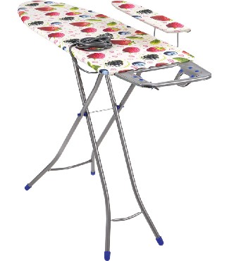 Гладильная поверхность -ДСП (1120х345мм), два положения высоты h-70, h-80см, EUROподставка под утюг с термосиликоном, съемный подрукавник, электросединитель 2,2м, розетка, материал чехла-хлопок, max нагрузка на глад.поверхность 15кг.,вес изделия-5,54кг. Индивидуальная термоупаковка.