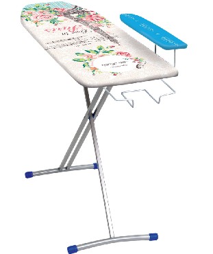 Гладильная поверхность -фанера (1225х345мм), два положения высоты h-70, h- 80см, выдвижная подставка под утюг, съемный подрукавник, материал чехла-хлопок, max нагрузка на глад.поверхность 15кг
