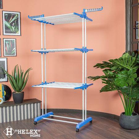 Многофункциональная напольная сушилка для белья Helex — незаменимая вещь в любом доме. Имеет три яруса для сушки белья, дополнительные крючки позволяют суш...