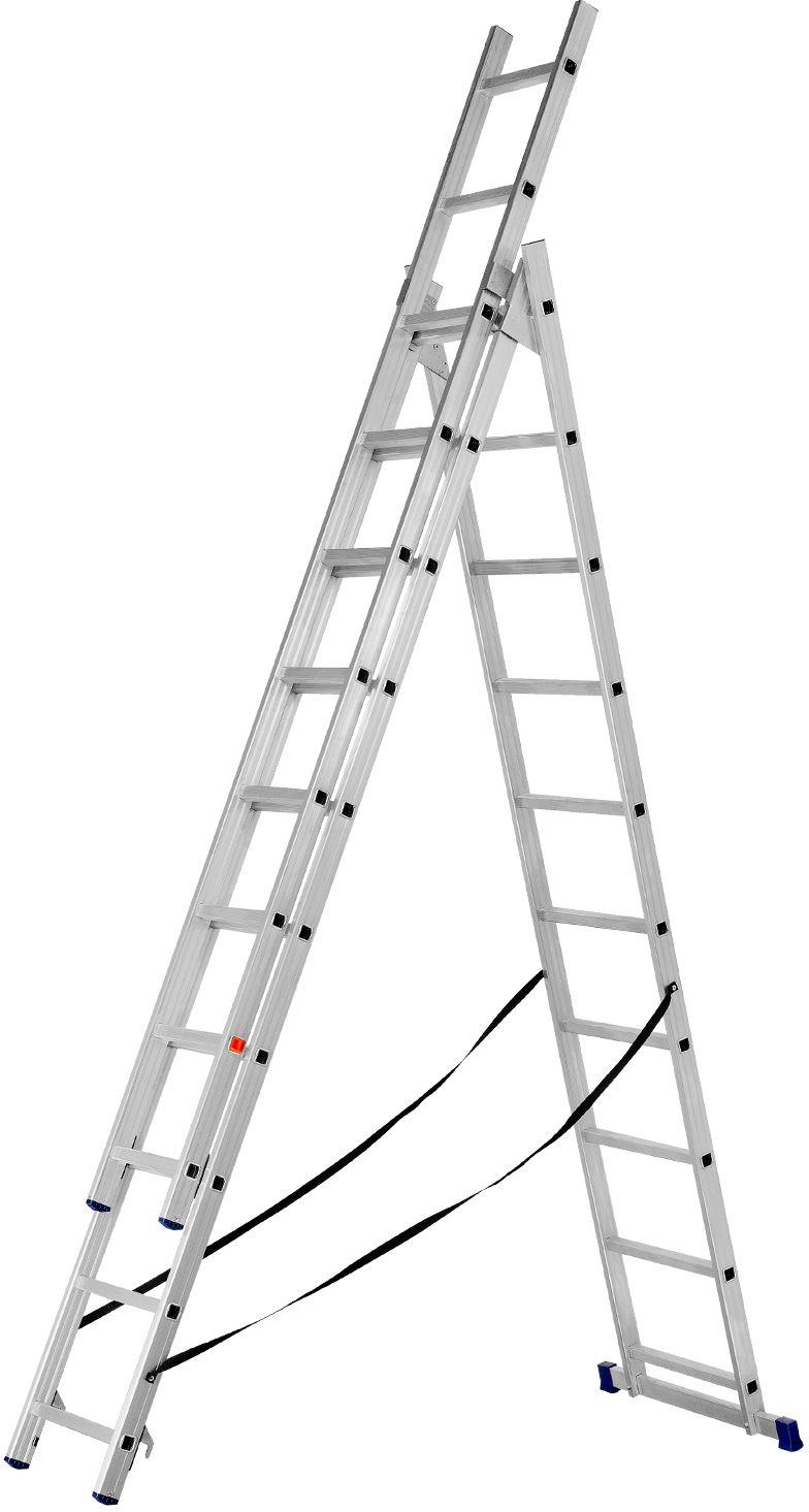 СИБРТЕХ Лестница, 3 х 10 ступеней, алюминиевая, трехсекционная, 97820