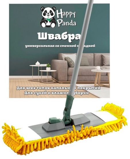 Швабра Размеры: длина ручки - 120 см; размер платформы: 41х12 см, тип ручки: нетелескопическая; материал: пластик, насадка микрофибра "Лапша", вес насадки - 80 гр. Швабра предназначена для сухой и влажной уборки гладких поверхностей, таких как пол, стены и потолок. Подходит для всех типов напольных покрытий (паркет, ламинат, керамика, линолеум, мрамор). Специально разработанная конструкция швабры помогает распределить давление на всю платформу. Платформа швабры в месте крепления к рукоятке имеет шарнирную конструкцию, благодаря чему швабру можно удерживать под любым углом к полу.