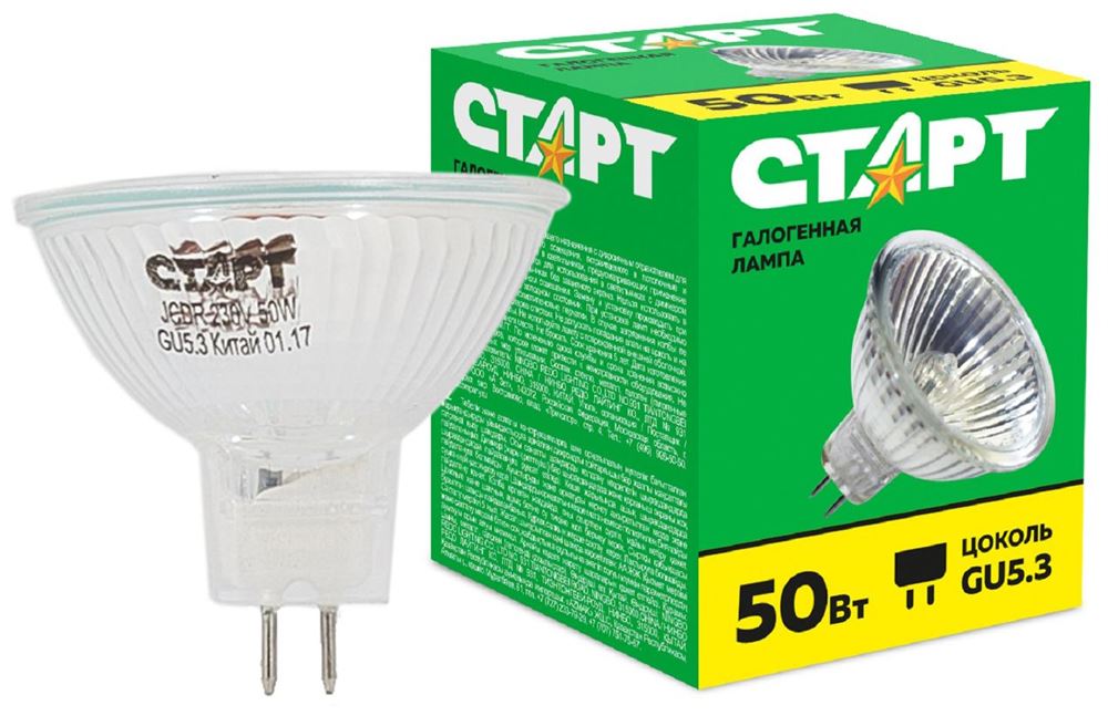 Галогенная лампа. Теплый свет. Напряжение питания 220В, потребляемая мощность 50 Вт. Цоколь GU5.3.