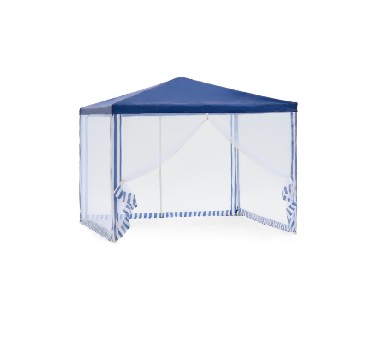 Тент садовый из полиэтилена – практичное и популярное решение для использования на даче, пикниках, шашлыках и кемпинге. Крыша тента защитит от солнца, а москитные сетки избавят от насекомых. Тент садовый из полиэтилена быстро и несложно монтируется и закрепляется с помощью растяжек. • Размер: 3х3х2,5 м • Цвет: синий • Материал: сетчатый полиэтилен 115 г • Каркас: металлическая трубка (18х18х24 мм) • Москитная сетка: да • Вес брутто: 11 кг • Размер упаковки: 108х14х18 см