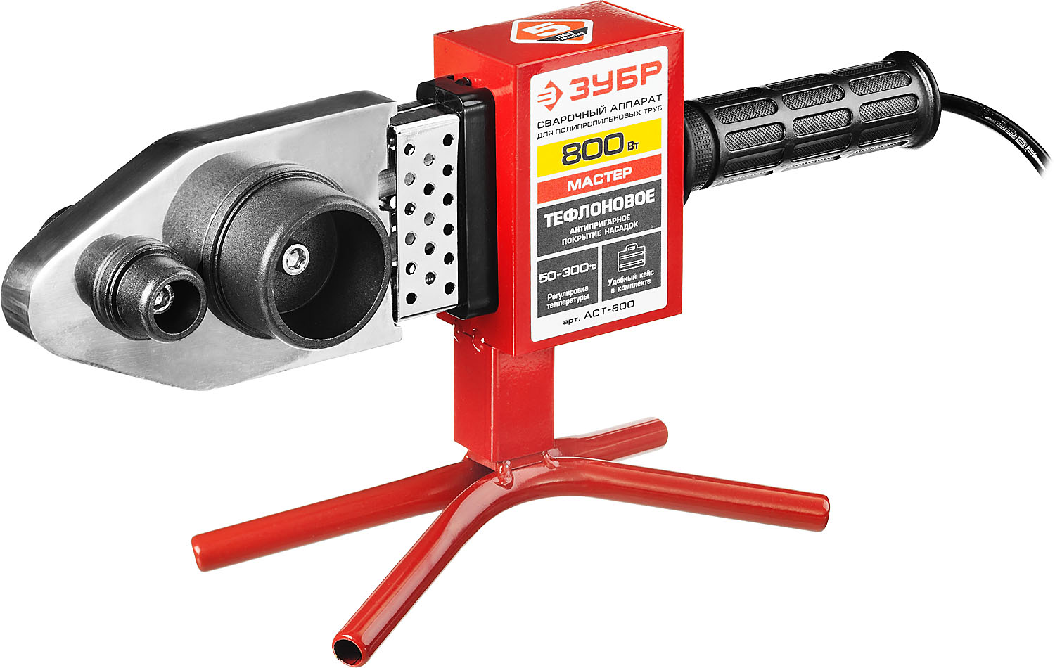Сварочный аппарат для полипропиленовых труб, 800Вт, 50-300С, насадки 20, 25, 32, 40 , 50, 63мм, металлический кейс, 220В ЗУБР МАСТЕР АСТ-800 служит для про...