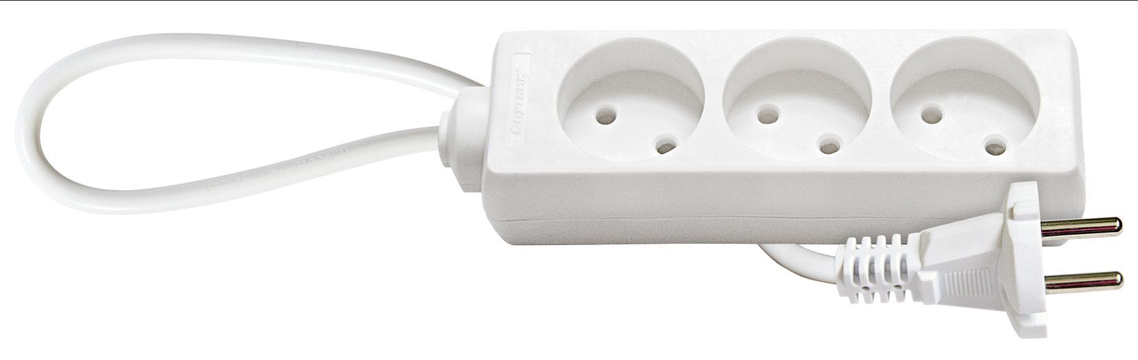 Двухжильный кабель ПВС, сечение 0,75 мм2, номинальное напряжение: 220 В, рабочая частота: 50-60 Гц, сила тока: 10 А, макс. мощность нагрузки: 2200 W (2,2 кВт), 3 гнезда, длина кабеля: 3 м, материал: пластик, индивидуальная упаковка: пакет с еврослотом.