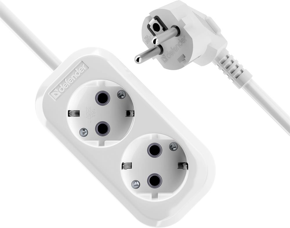 Удлинитель DEFENDER (99367) R320 16 А, 2 роз х5м , белый
