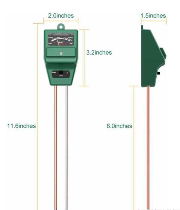 Помогает контролировать уровень РН почвы и достаточность освещения для растений. не требует батареек. можно использовать как внутри, так и вне помещения. размер: 28*5*3.5см. вес: 100гр.