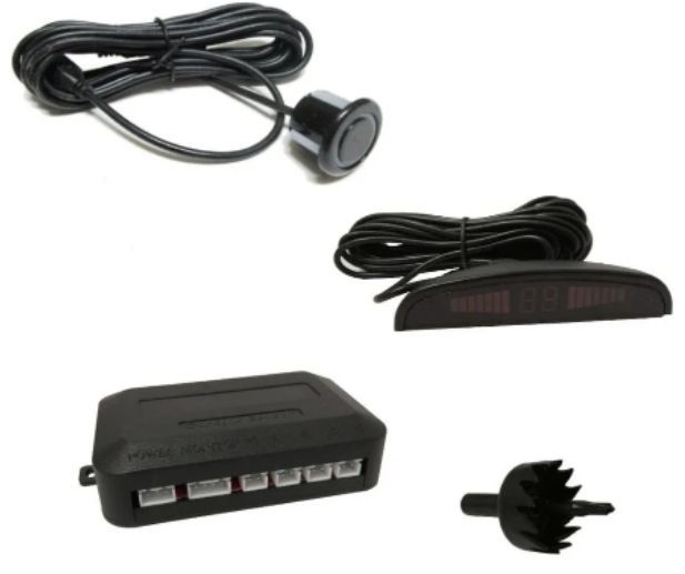 Парковочный радар, парктроники 4 шт, цвет черный. Размер 22х18х5 см Диаметр установочного отверстия 22мм. LED-индикатор графическая и цифровая индикация звуковое оповещение шаг измерения расстояния: 0,1м точная дальость обнаружения: от 200 до 30 см напряжение: 12 в